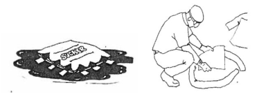 用吸附棉片或者吸附枕放在吸附棉條或者吸液柵圍住的區(qū)域,使其成分吸收